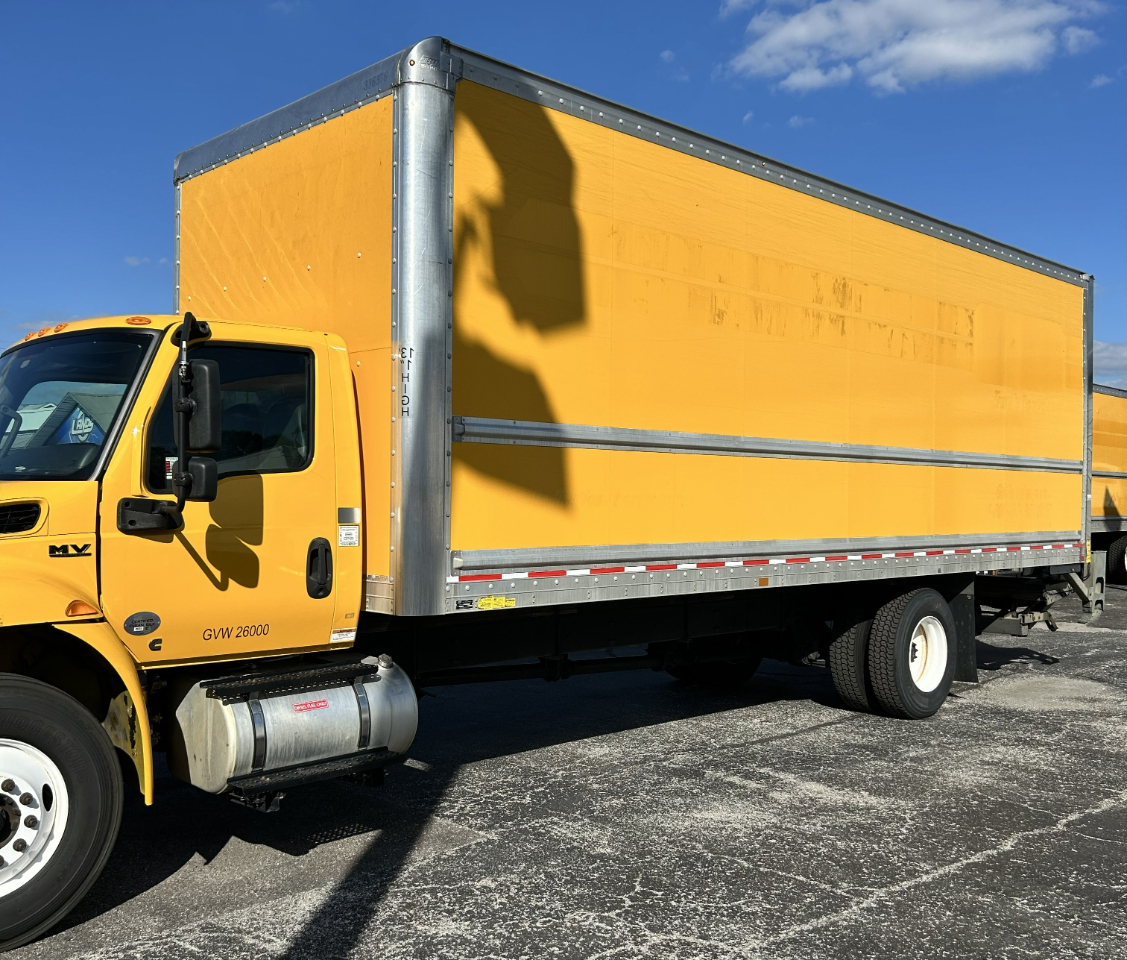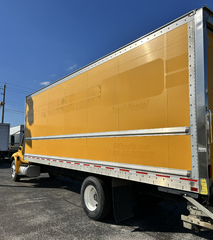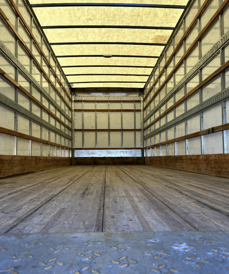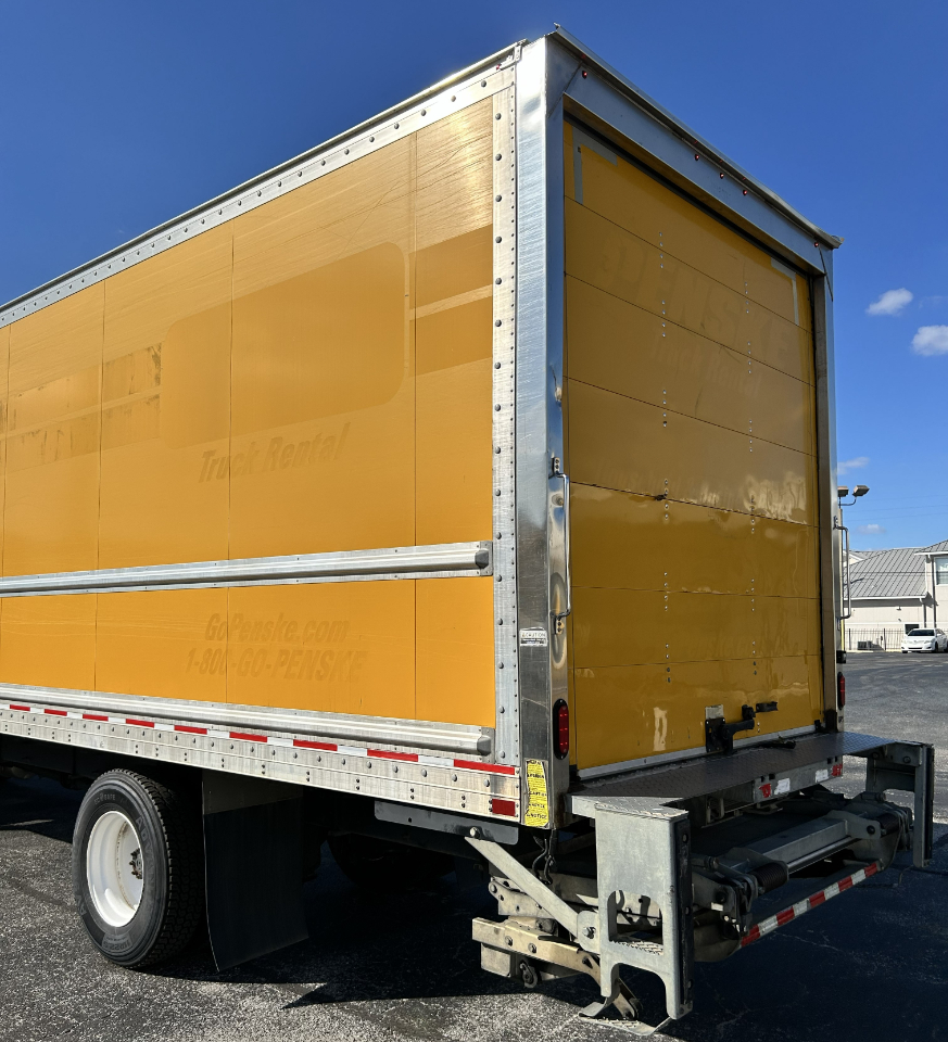 Like-new 26' box truck with lift gate and ramp, 199k miles, cold air conditioning, and an automatic transmission with a Cummins 6-cylinder engine, ready for work.