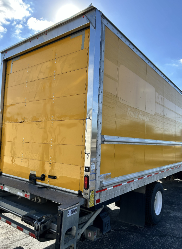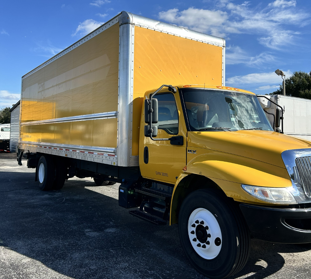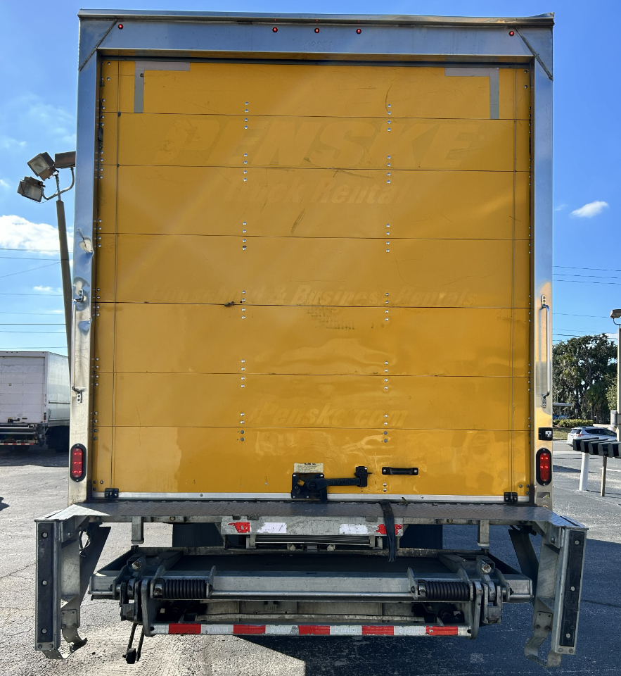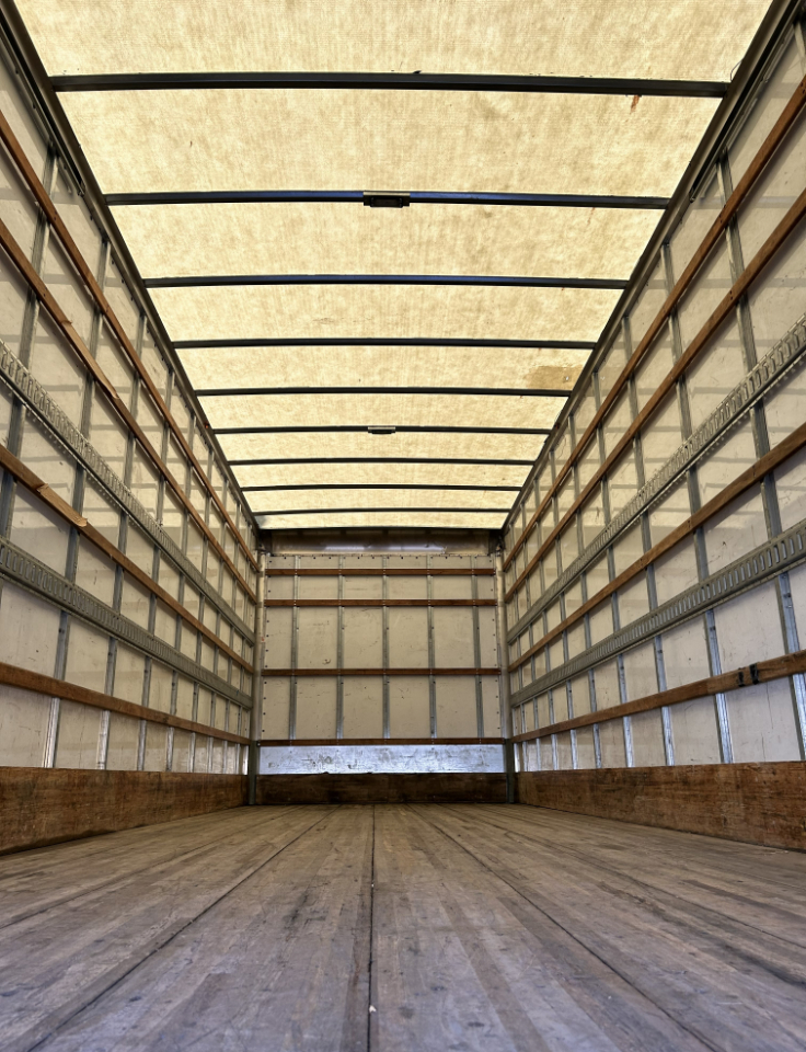 Like-new 26' box truck with lift gate and ramp, 199k miles, cold air conditioning, and an automatic transmission with a Cummins 6-cylinder engine, ready for work.